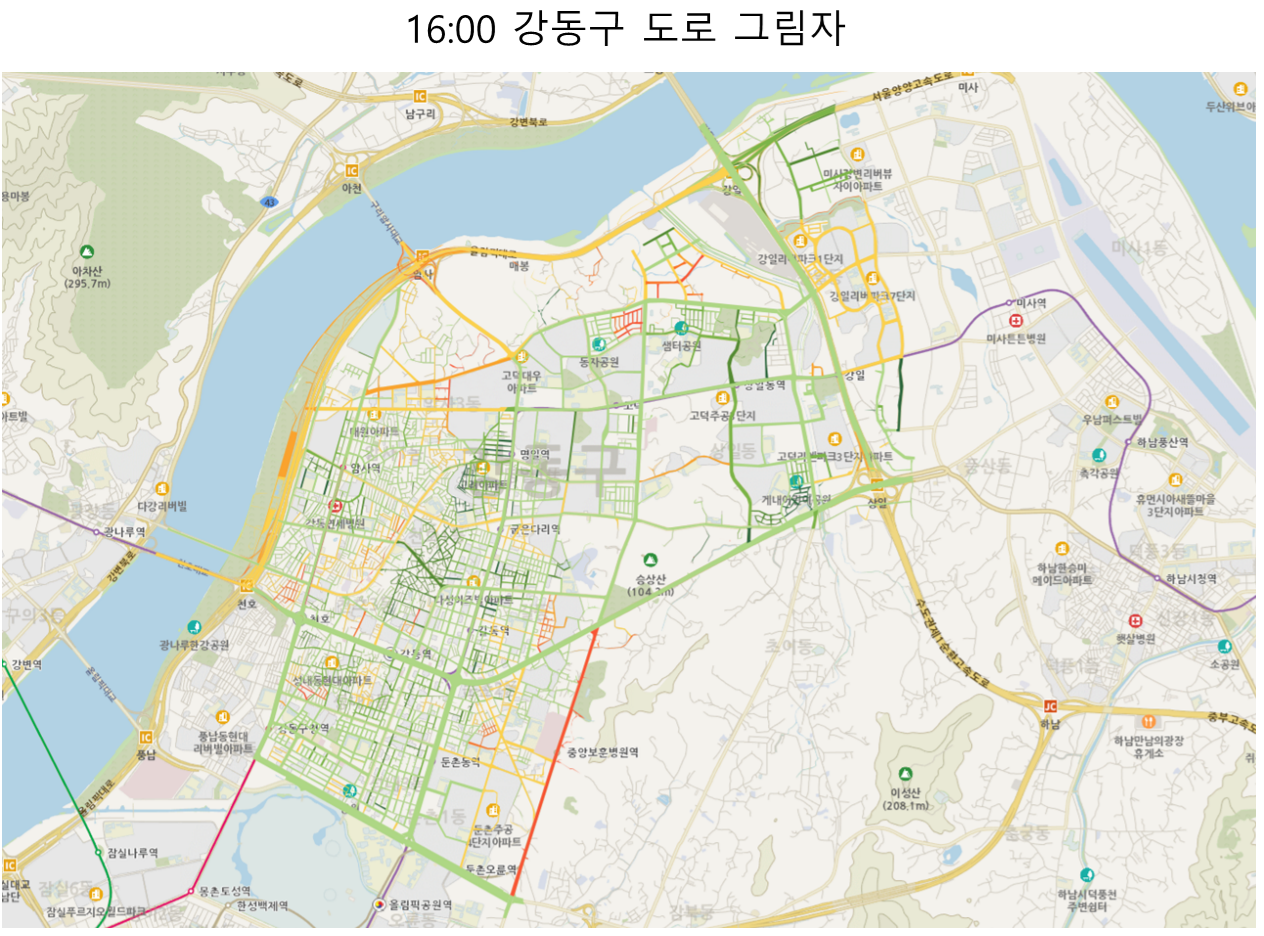 두 데이터를 합쳐서 도로의 음영도를 계산한 결과는 다음과 같다.