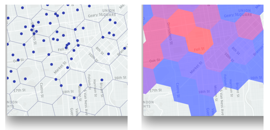 인프라 대비 처리할 좌표 데이터가 많거나 중복되는 값이 많은 경우 육각형 셸로 정규화를 하는 것이 유용할 수 있다.