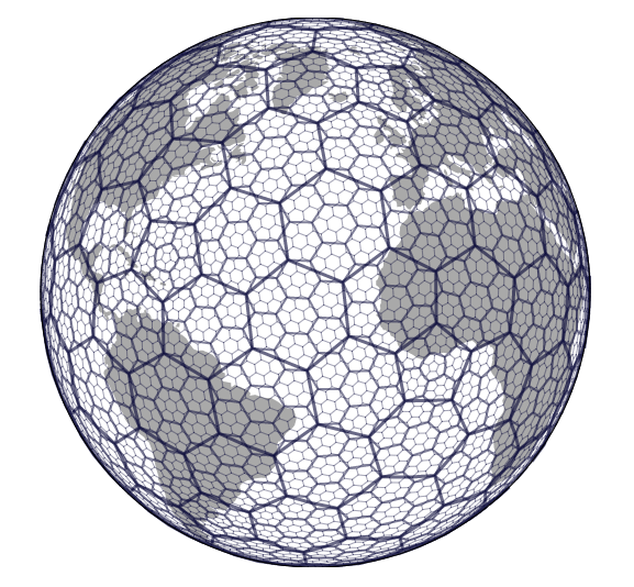 - 지구를 식별 가능한 육각형 형태로 나눈 형태