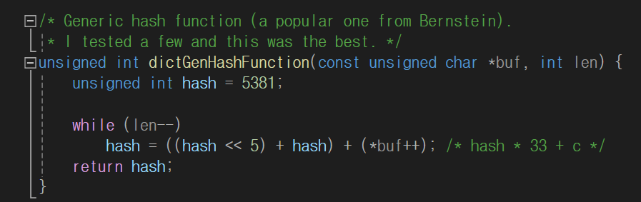 문자열 해시 알고리즘 중 하나인 djb2를 사용한다.