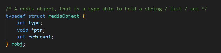 키의 경우 SDS 형태로 관리를 하지만, 값의 경우 list, set 타입도 저장하기 때문에 robj(Redis Object) 란 구조로 관리한다.