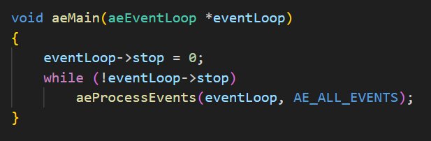 이벤트 루프에서 특이한 점은 AE_DONT_WAIT flag를 통해 select 시스템 콜을 non-blocking 방식으로 처리할 수 있다.