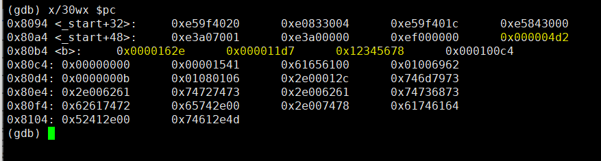 _start+32에 bp를 찍고 이 때 =0x12345678의 위치를 확인해보면 다음과 같다.