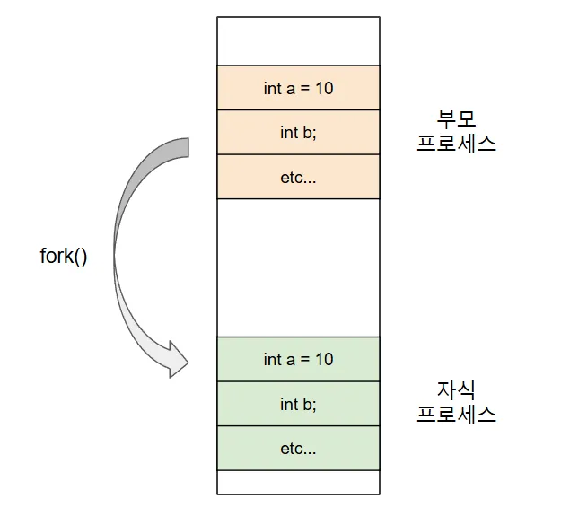 현재 프로세스의 메모리를 복사해 새로운 공간에 자식 프로세스를 만든다.