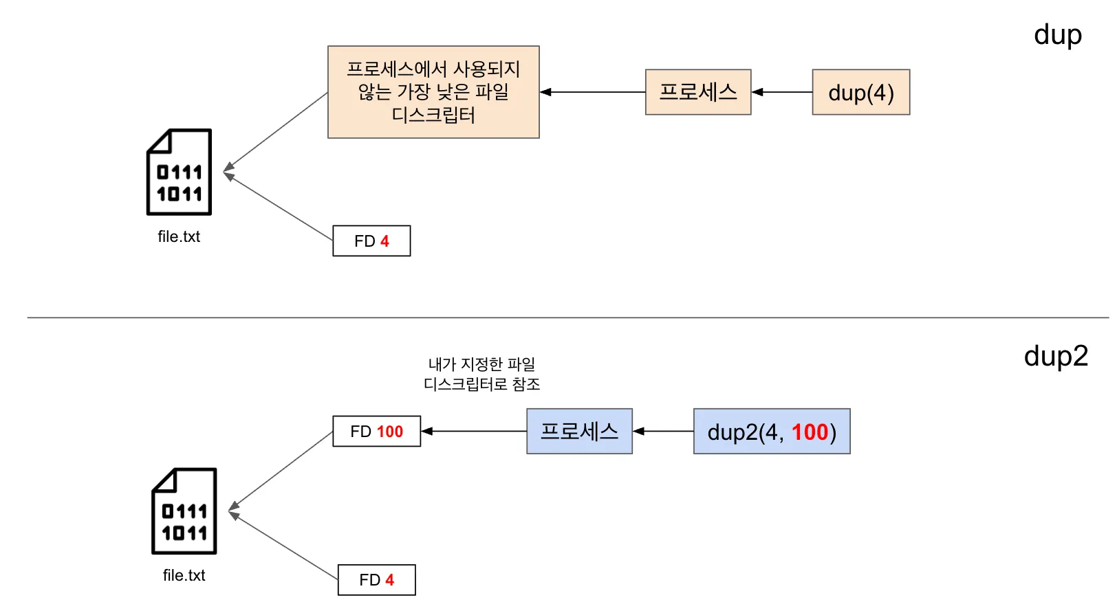 하지만, 아직 사용되지 않는 가장 낮은 숫자의 파일 디스크립터를 사용하는 게 아니라