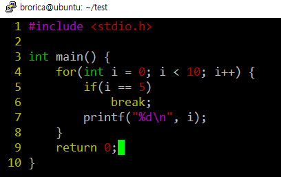 0 ~ 9까지 출력을 하는 loop를 만들고, 5가 되면 무조건 break 되는 loop.c 가 있다 할 때.